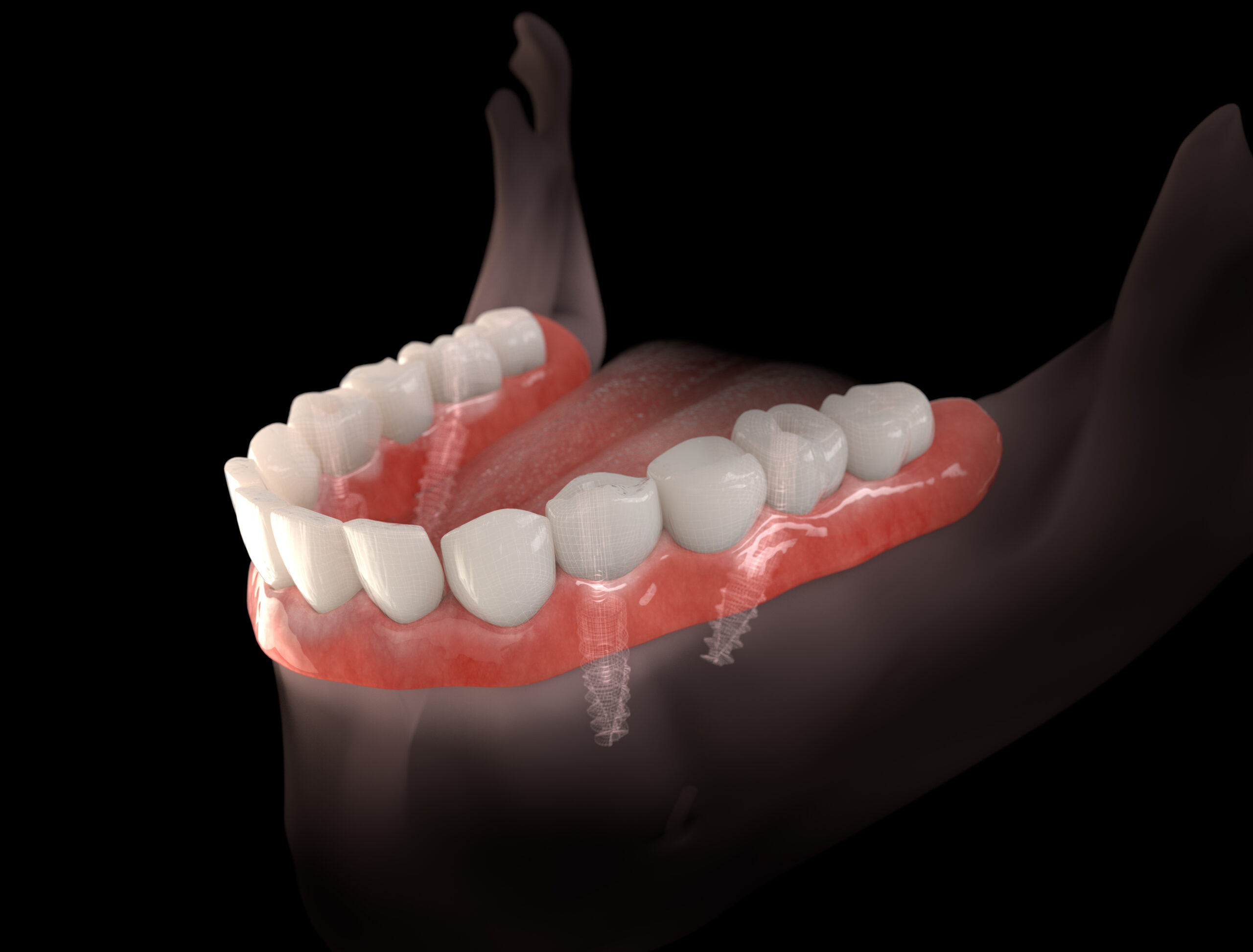 Most patients receive 2-4 implants to support a lower overdenture. The exact number depends on your bone quality, jaw anatomy, and functional requirements. Two implants provide substantial improvement over traditional dentures, while four implants offer maximum stability. We determine the optimal number during your evaluation.